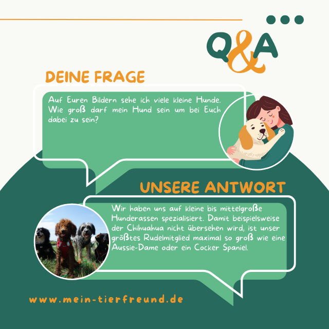Bei Mein Tierfreund werden sozialisierte und verträgliche Hunde mit ins Rudel aufgenommen. Dabei zählt nicht das Alter, die Rasse oder der Charakter. Aber passen muss es!